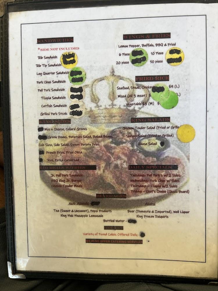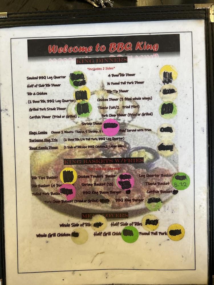 The menu at Barbecue King emphasizes slow-smoked barbecue. Signature items include ribs, pulled pork, and fried fish, showcasing classic Southern flavors. Each dish offers a unique taste of tradition.